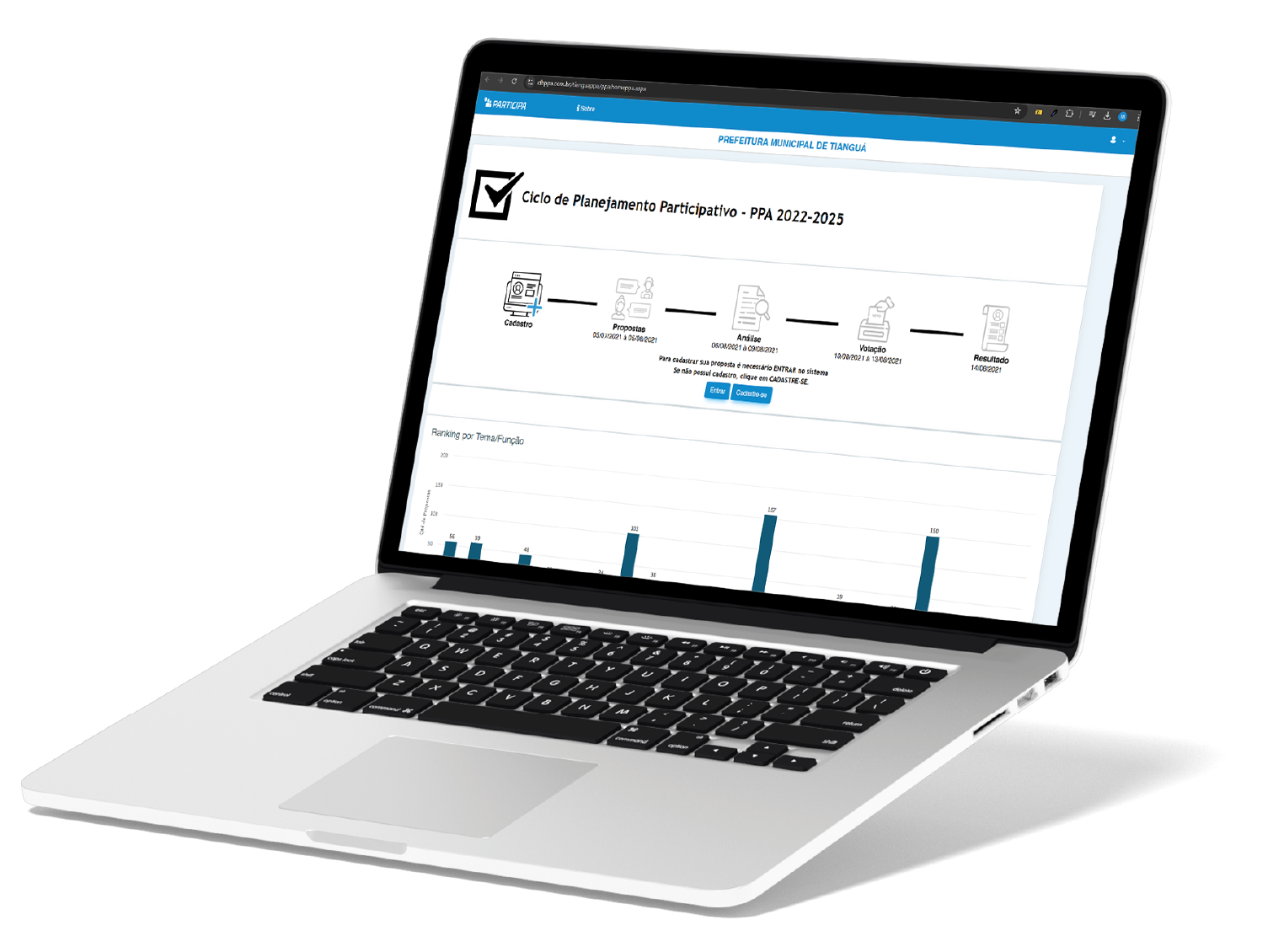 A plataforma oferece gestão e análise das propostas registradas que irão compor o Plano Plurianual da gestão.