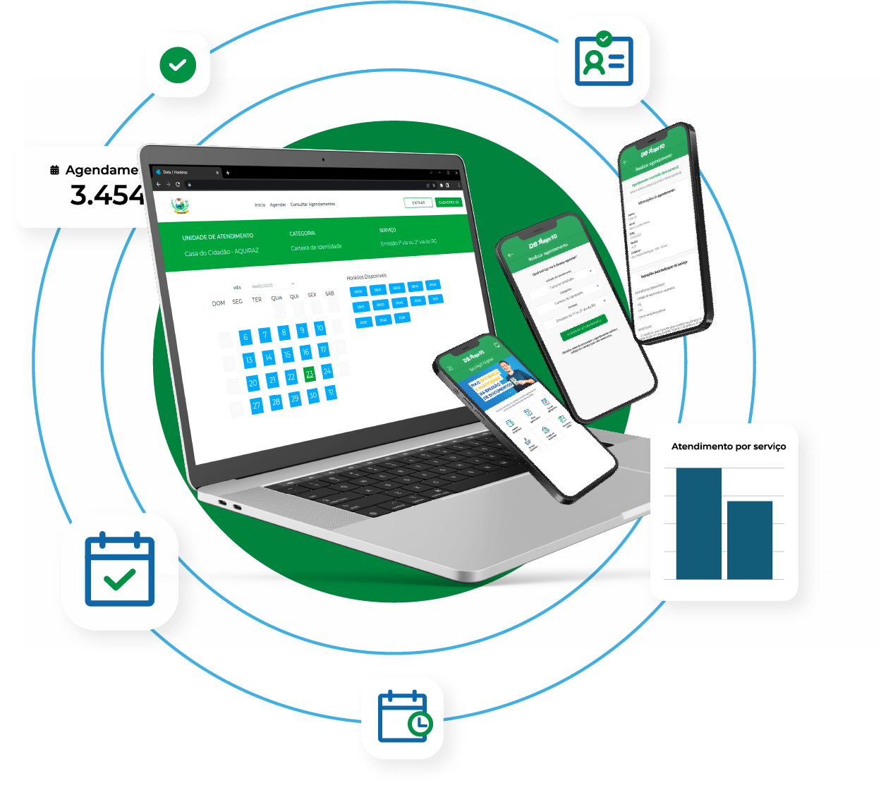 Agendamento online pela WEB ou aplicativo sem a necessidade de enfrentar filas e longo tempo de espera.
