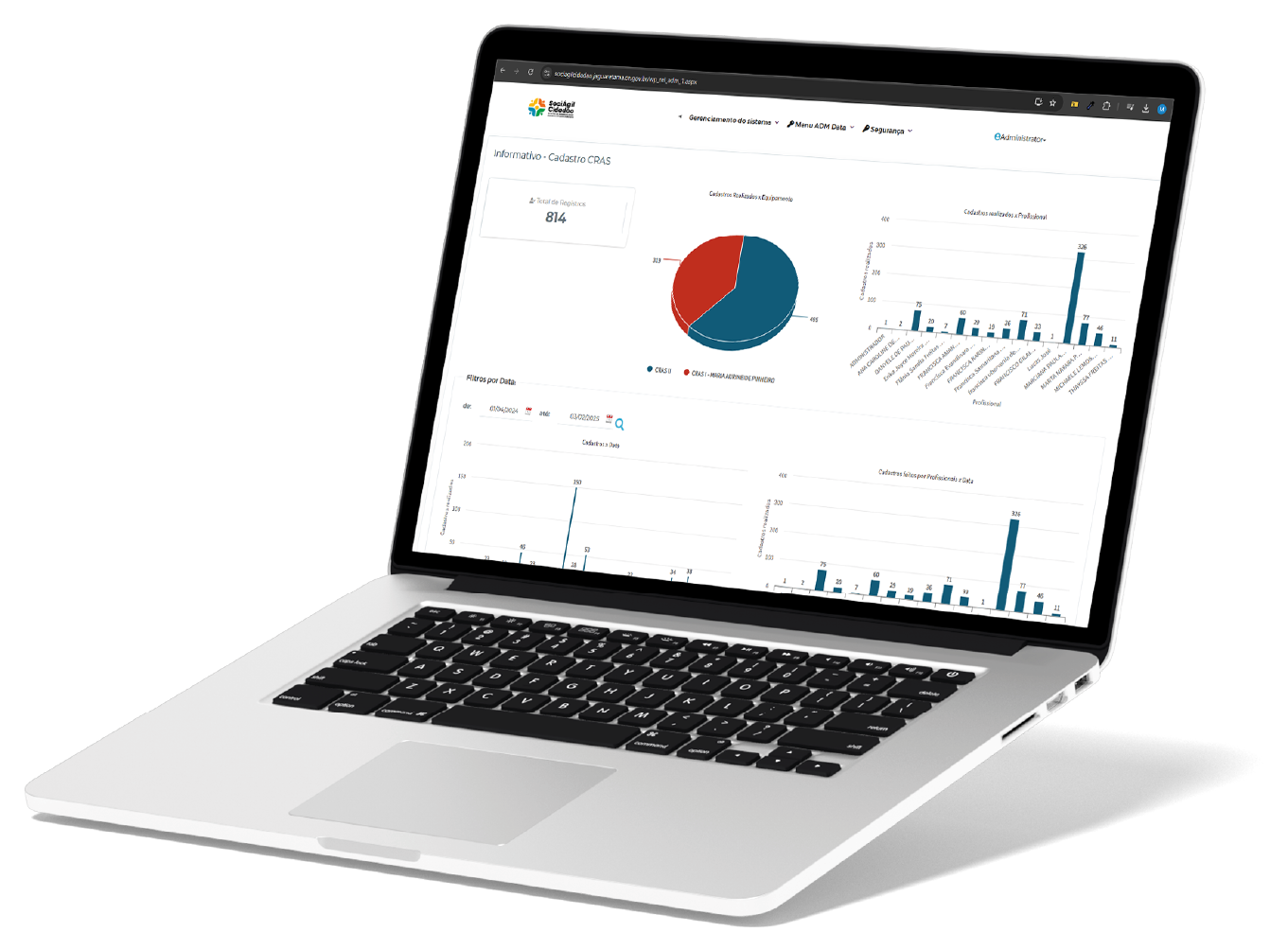 Relatórios consolidados em tempo real de todos os dados informados pelos profissionais da assistência social da plataforma.